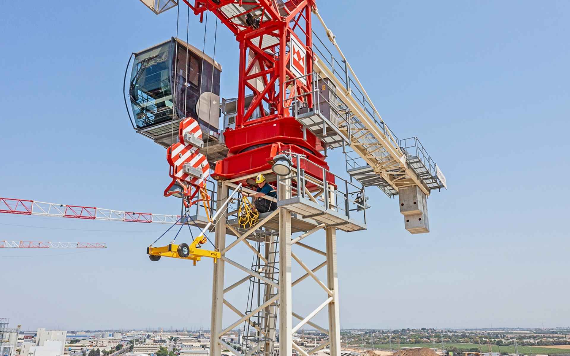 מולרם מתקני הרמה גאה להציג פתרון חדשני וייחודי – ג'ירף: מתקן הנפה ייעודי שמאפשר למפעילי עגורני צריח לשנע בבטחה ובנוחות ציוד אישי ומקצועי מהקרקע ישירות אל מרפסת הקבינה.