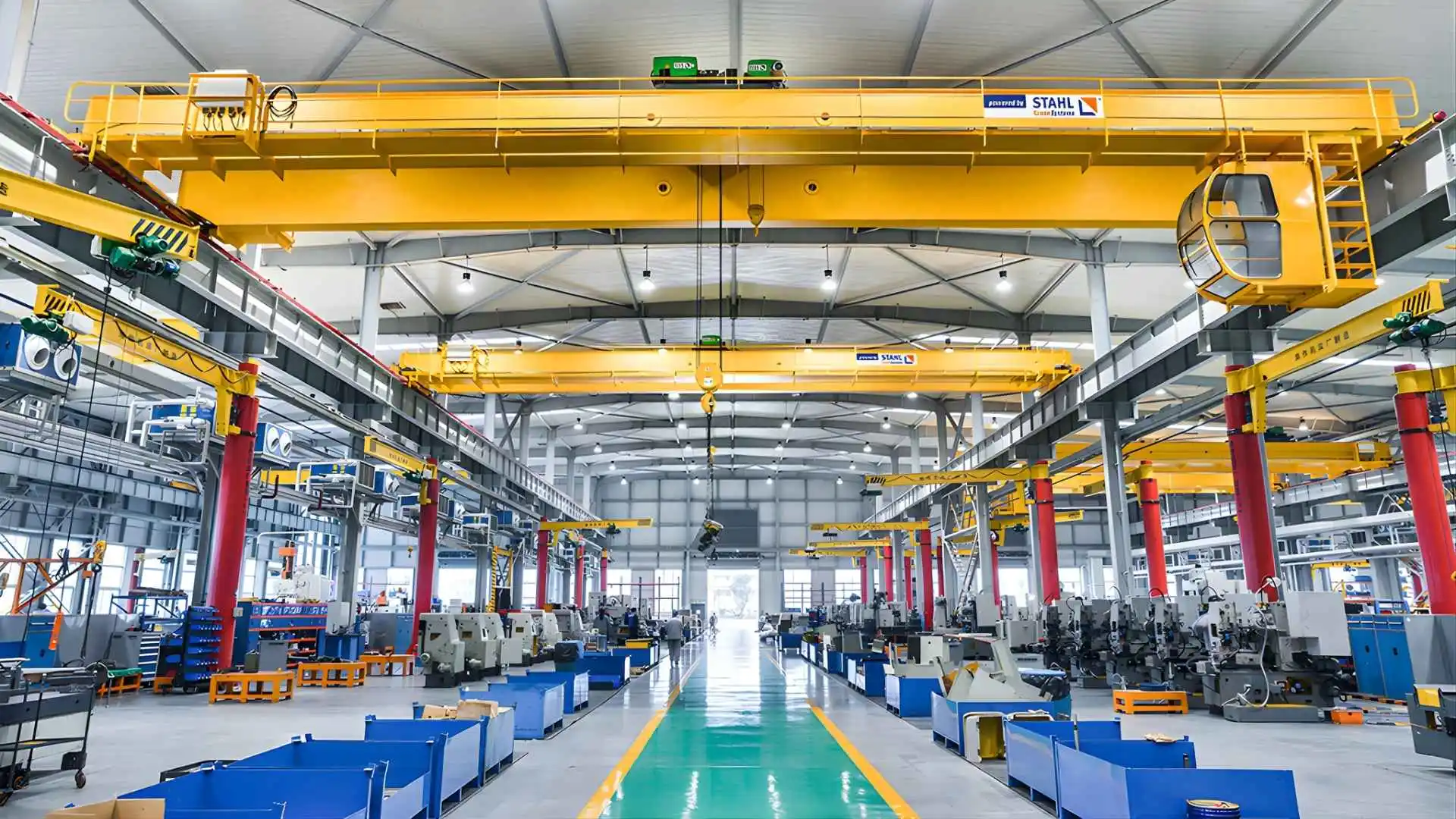 עבודה מתואמת בין עגורנים באזורים חופפים באמצעות סנכרון והשהייה.