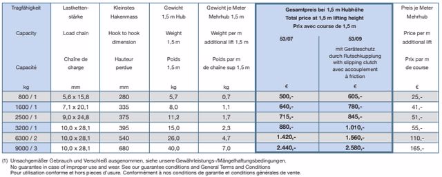 - מגוון קטרי שרשרת בהתאם לעומס (5.6×15.8 מ״מ ועד 10×28.1 מ״מ)